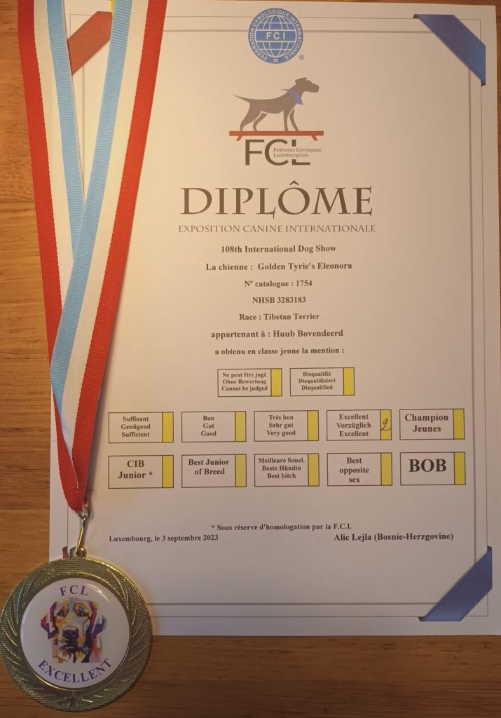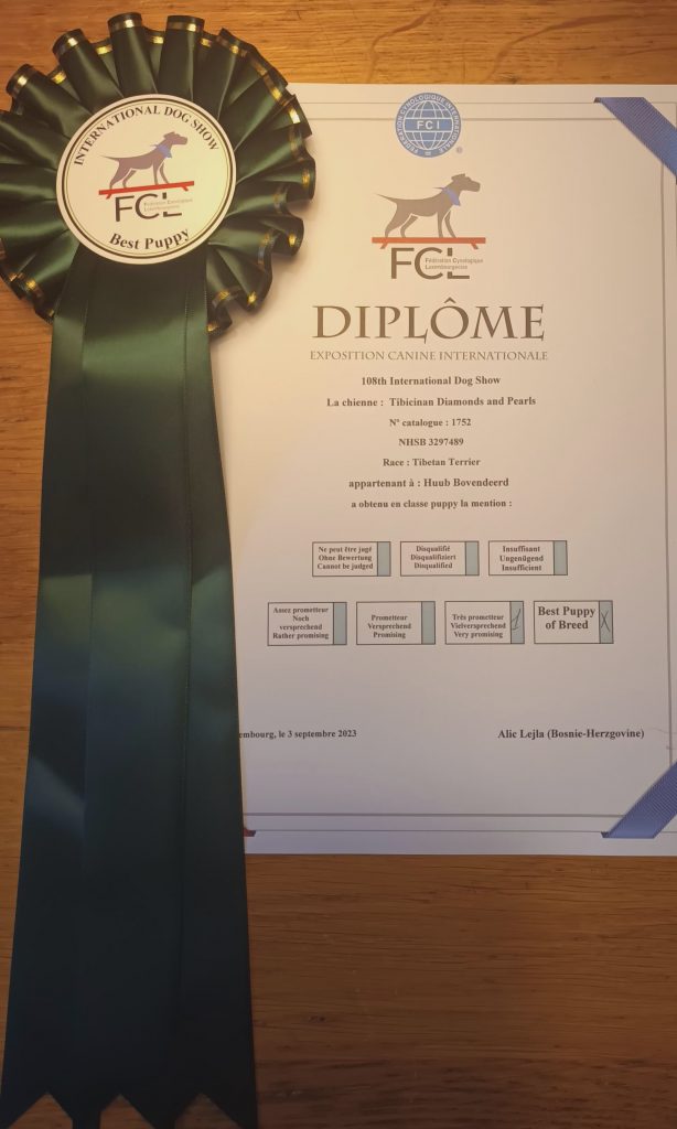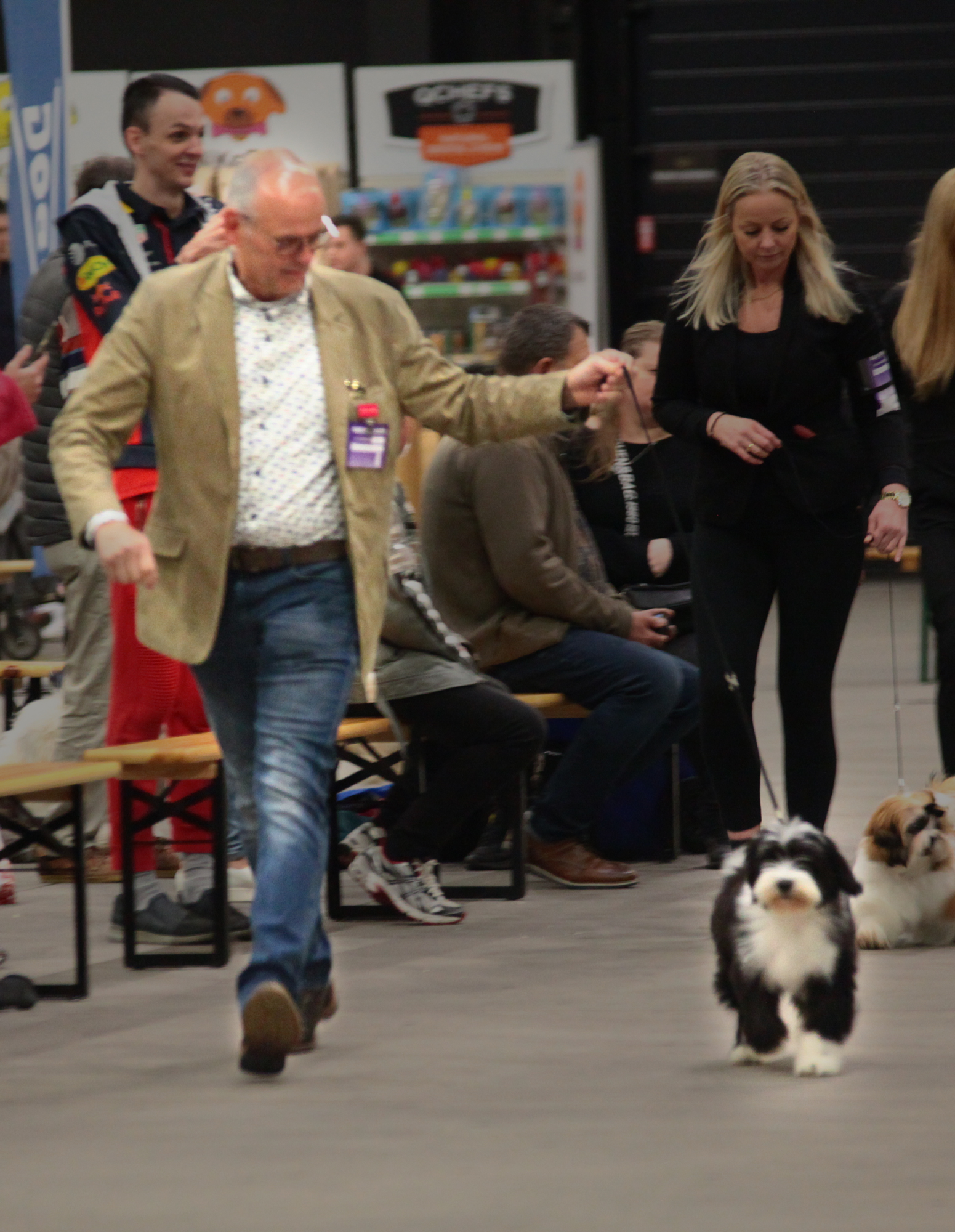 Liisa (Tibicinan Daimonds and Pearls) behaalde haar eerste punten in de jeugdklasse met 1 uitmuntend, vervolgens beste jeugdhond, FCI-CACIBJ en als complete verrassing beste van het ras (BOB) te worden.